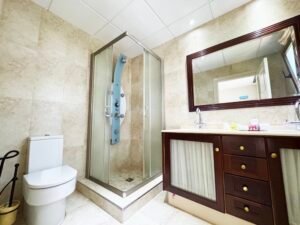 El inmueble está equipado con aire acondicionado y suministro de agua y luz, listos para entrar. La distribución en tres alturas, junto con el ascensor, facilita la movilidad diaria y la gestión de espacios para familias grandes o parejas que buscan habitabilidad y versatilidad. La presencia de zonas verdes, pistas deportivas y áreas de ocio convierte este inmueble en un referente para quien valora un estilo de vida activo sin renunciar al confort y la intimidad.